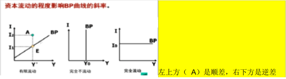 (1)BP 曲线(斜率一般正斜率)是满足国际收支均衡的各种利率I和国民收入Y的组合