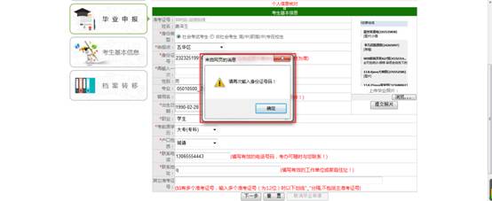 2、身份证号一栏填写本人真实身份证号,如出现下图:
