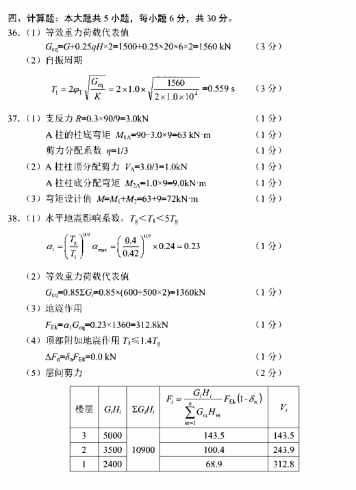 33.(1)质量和刚度沿高度分布比较均匀;(2分)