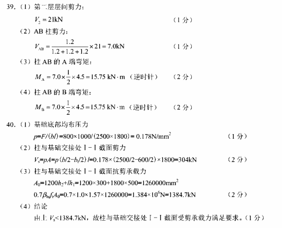 32.(1)剪力墙对框架纵向温度变形的约束较大;(2分)
