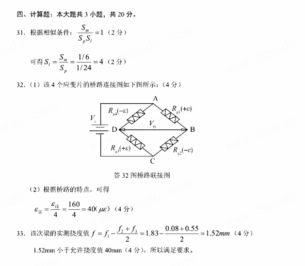 全国2018年4月自学考试建筑结构试验试题答案及评分参考