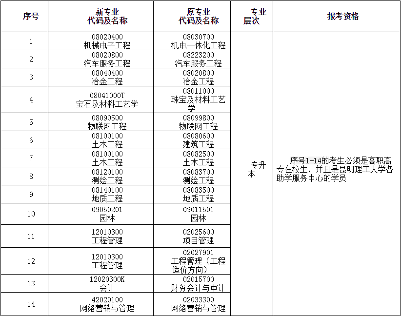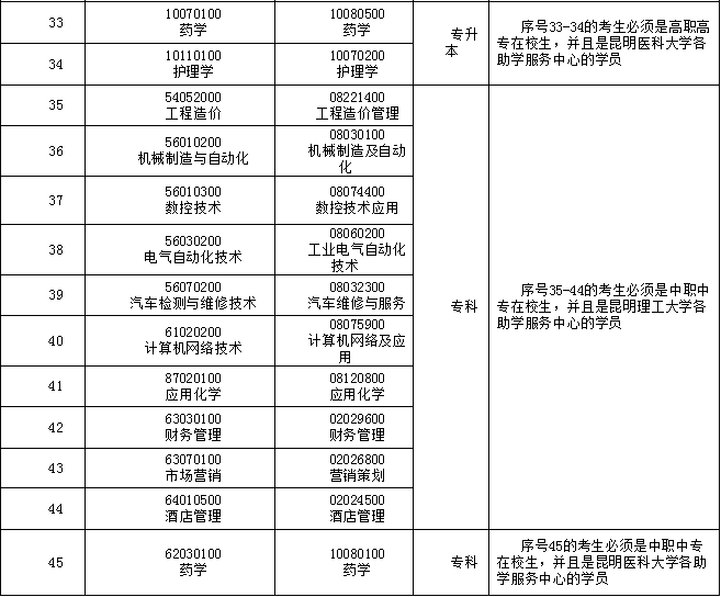 3、报考下列专业的考生,必须具备下列资格,否则不能取得毕业证书。