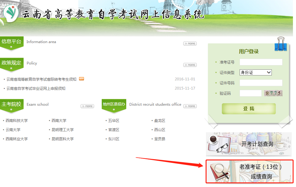 参与云南自学考试的考生因为时间跨度较大,所以很多考生可能已经忘了自己过去自考的考试成绩,尤其是几年前还在使用13位准考证号的成绩。那么这个成绩该怎么查询呢?下面来看看具体操作流程。