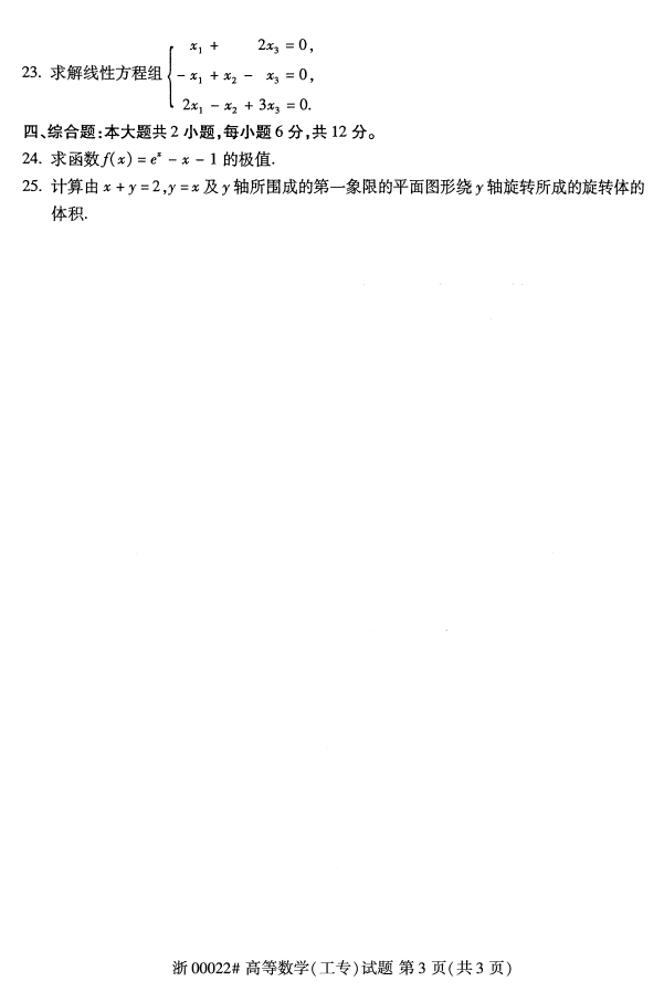 试题科目:高等数学(工专)试题