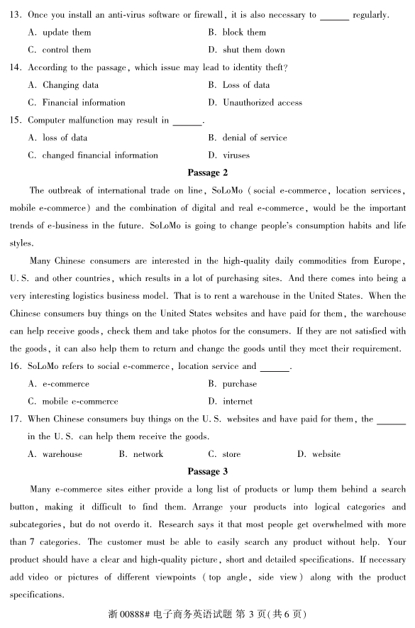 以下是云南自考网整理的全国2019年10月自考00888电子商务英语试题,希望能对各考生有所帮助。