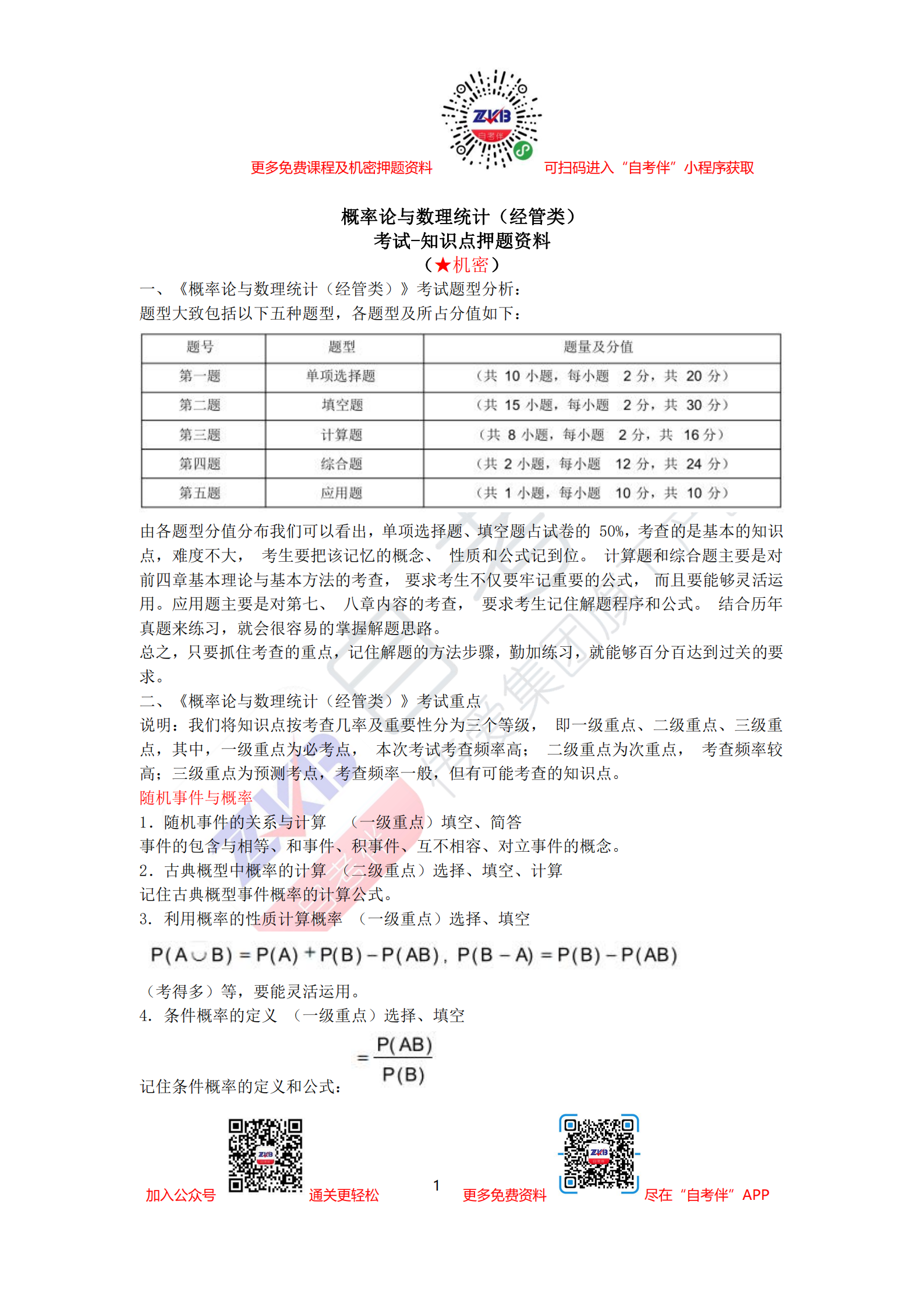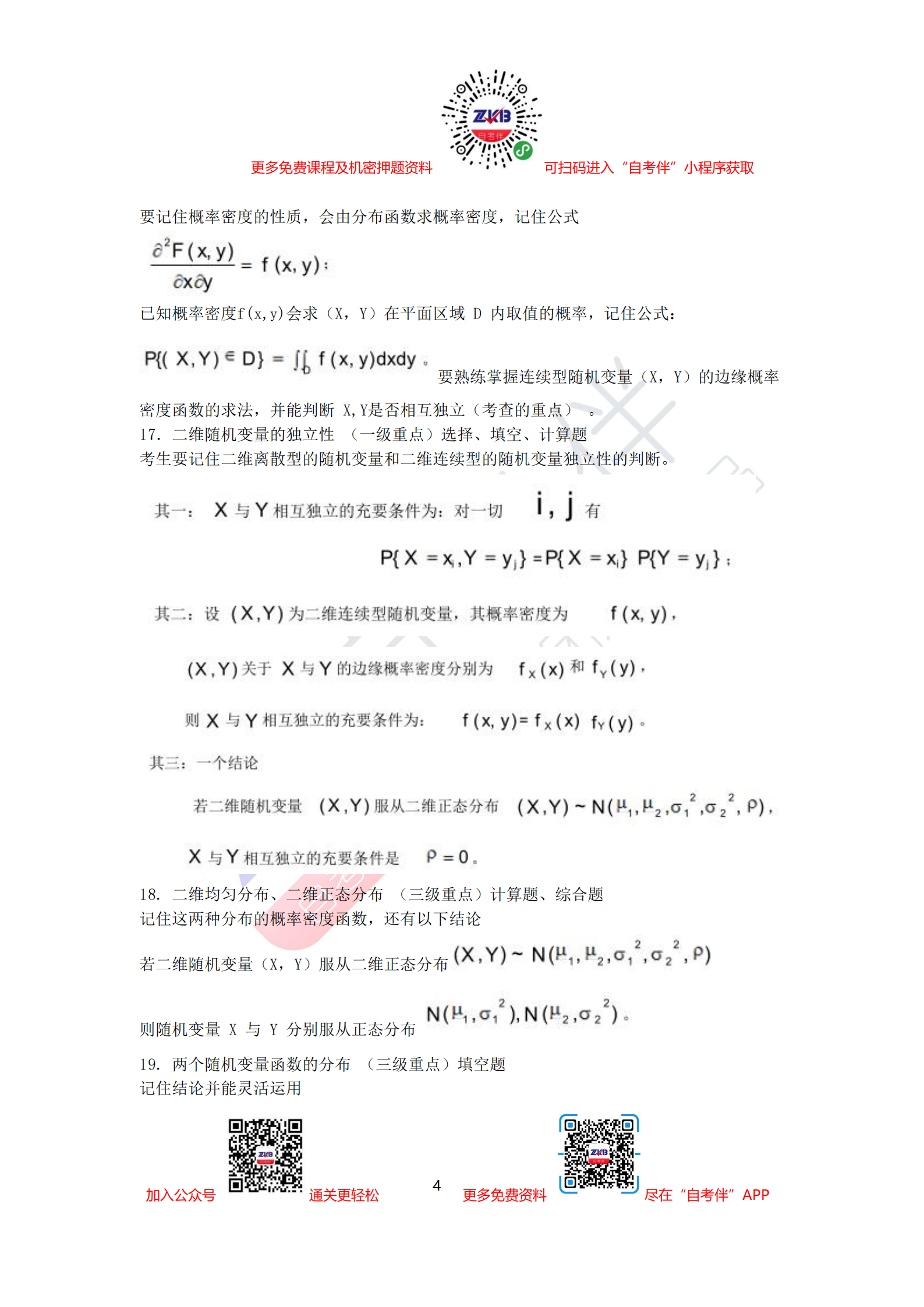 云南自考04183概率论与数理统计(经管类)(知识点汇总)押题资料