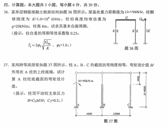 35.试列举不少于四种作用在单层厂房排架上的可变荷载。